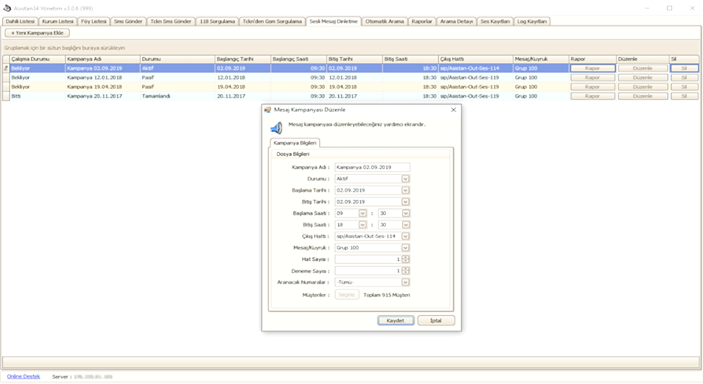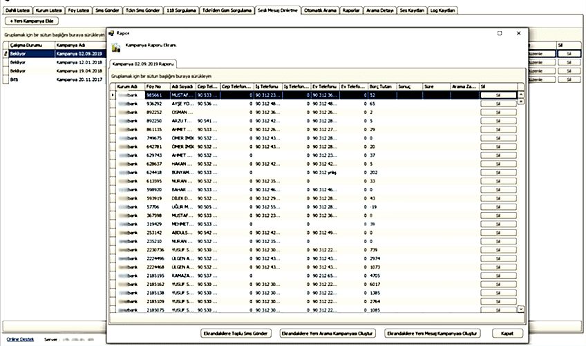 Kaç kişiye ulaşıp sesli mesajı dinletip Agent’lara aktarıldığını,